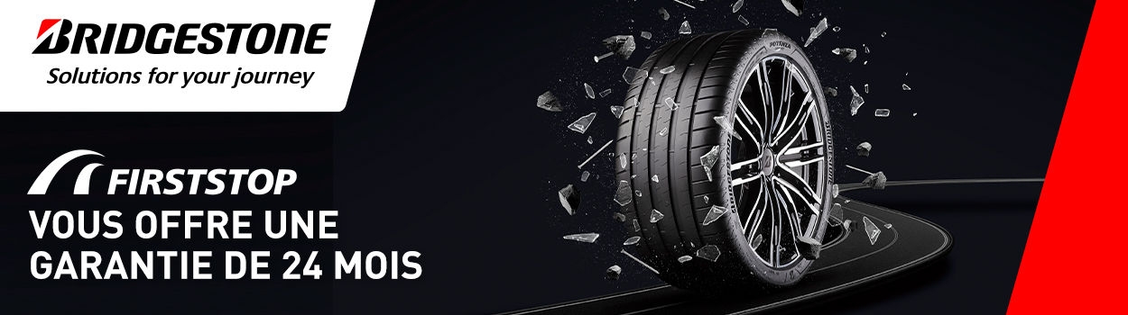 Lorsque vous achetez des pneus Bridgestone chez First Stop, vous bénéficiez GRATUITEMENT de la GARANTIE sur vos pneus Bridgestone ,qui couvre automatiquement tous vos dommages dans les 24 mois.